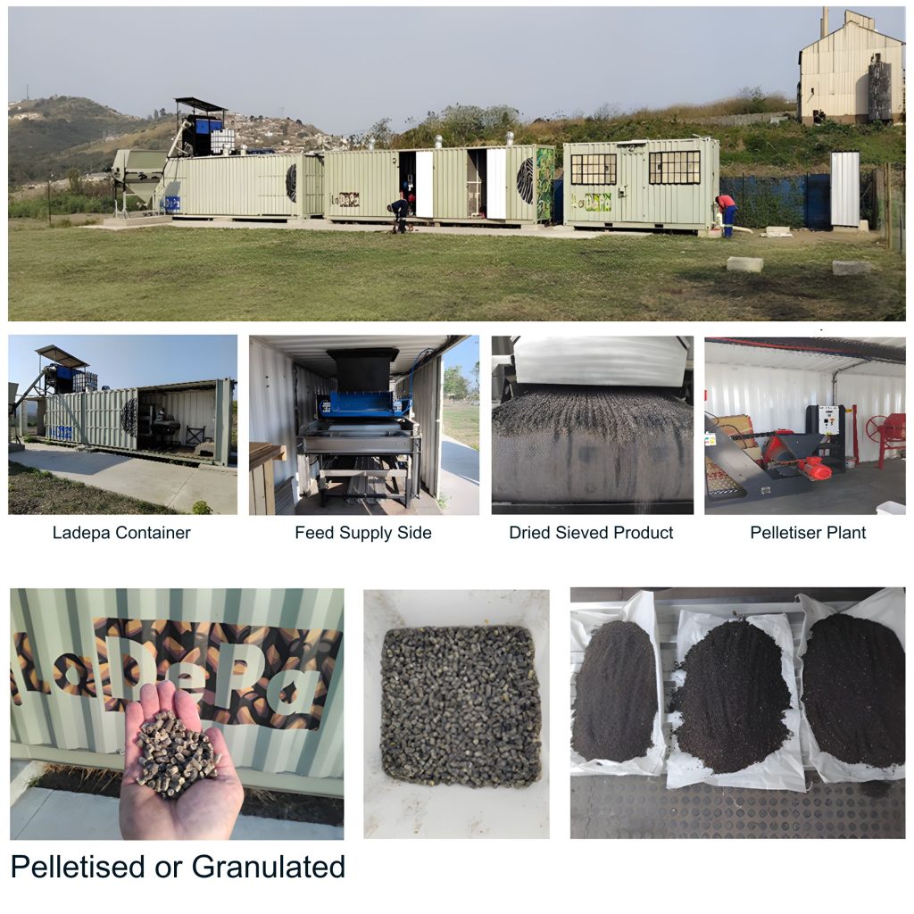 The plant has been designed by a company called PES in conjunction with eThekwini Municipality and is currently being trailed by eThekwini in conjunction with Water Research Commission (WRC) for the treatment of VIP’s and UD pit latrine sludges.